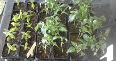 U ačokči (na obrázku výše) jsem vysel šest hnízd po dvou semínkách. Vyklíčili rostlinky ve čtyřech hnízdech a v jednou oba semínka, takže celkově pět rostlin. Pokud se jim bude dařit i nadále, tak bychom mohli mít ačokči více než bohatě. U okurek (na obrázku níže) je klíčení taky moc dobré a obě nové odrůdy zatím vypadají velice schopné. Příště už snad přidám fotky okurek, jak se pnou po konstrukci.