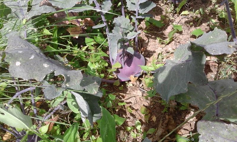 O dost lépe vypadají kedlubny. Asi škůdcům jejich listy nechutnají až tak, jako je tomu např. u zelí. Když jsem je vysazoval, tak jsem si říkal, jestli nejsou moc daleko od sebe. Teď si zase říkám, jestli nejdou moc nahusto. Obe odrůdy jsou většího typu, a kromě větší bulvy mají i o něco větší olistění. Sklizňově je zatím na tom lépe fialová odrůda „Delikates“, kterou už od minulého týdně sklízíme. U bíle odrůdy „Superschmeltz“ se zatím jenom začíná vytvářet zduřené místo nad kořenem mezi listy. Je to ale pozdní, obří odrůda, tak uvidíme. Fakt jsem zvědavý, na jakou velikost v našich podmínkách vyroste.