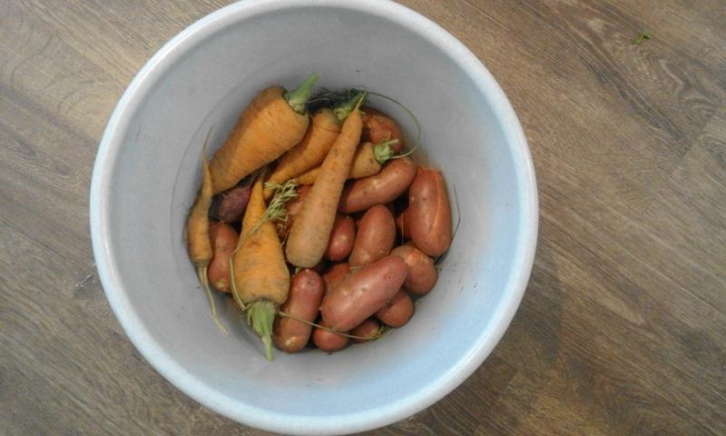 Manželka zase nadloubala nějaké brambory k okamžité spotřebě. Když už máme hodně cuket, tak budeme mít zase cukety s bramborem. I tento týden jsme vytáhli pár mrkví. Vypadají o hodně větší než ty z minulého týdne. Akorát nevím, jestli tak stačily vyrůst za jeden týden, nebo se nám zrovna podařilo vytáhnout ty větší.