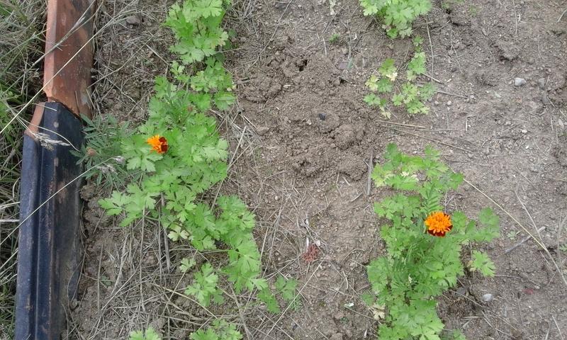 Kořenová petržel z prvního výsevu nevyšla. Nevyklíčilo snad ani jedno semínko. Není mi jasný důvod. U tak špatného klíčení ale podezírám semínka. Zkusili jsme druhý výsev, tentokrát semínka z jiného zdroje. Jednu odrůdu („Konika“) jsme zvolili stejnou jako u prvního výsevu. Druhou odrůdu „Alba“ jsme zvolili, protože to byla jediná další, která měla kónický kořen určený do horších půd. Klíčení bylo podruhé už celkem dobré, odhadem tak 80 %. O trochu lepší mi to přijde u odrůdy „Alba“ (klíčení i růst). Asi poslední dva týdny jsme na záhon s petrželí koukali a říkali si, že by petržel potřebovala trochu přečistit a přetrhat. Dostali jsem se k tomu teď a udělali jsme jedno u druhé. Kromě relativně čistých řádků máme i svazek petrželky na vaření.