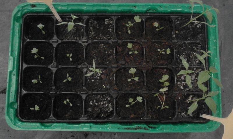 Další byl na řadě celer. Ten jsem vysel jenom tak do plastové vaničky a jak jsem teď zjistil, tak moc nahusto. Semínka klíčí postupně a když jsem si ze začátku říkal, že klíčení nic moc, tak teď je to až moc dobré. Snažil jsem se vybrat ty největší rostlinky a přepíchal jsem je do sadbovače, na prázdné místo po vyndaných paprikách. Víc budu přesazovat, když zbytek rostlinek trochu povyroste, i když o moc více sazenic v podstatě ani nepotřebujeme. Přidávám si mentální poznámku, že celer příště vysévat mírněji.