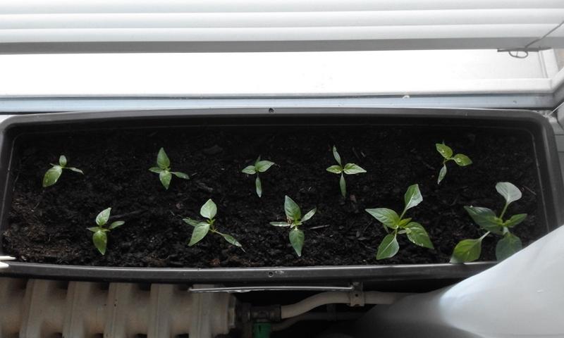 Záhon s hráškem nás dost vyčerpal (a to měl být relax), navíc se dost ochladilo, a tak jsme jeli zpátky do Prahy. Tam mně ještě čekala nějaká ta práce se sazenicemi (to ale až další den). Udělal jsem truhlík č. 2 s paprikami. Tohle byla odrůda „Slovakia“, která by měla být tuto sezonu jako hlavní. Zatím to tak nevypadá, protože skoro neroste. Ale druhý výsev dopadl lépe než ten první a podařilo se mi vybrat 10 schopnějších rostlin. V porovnání s těmi prvními paprikami jsou to dost prckové, ale snad to časem doženou.