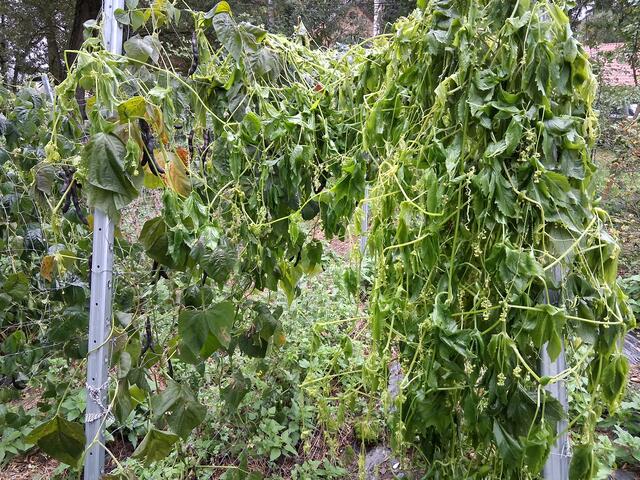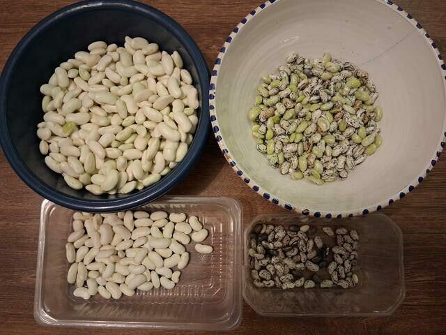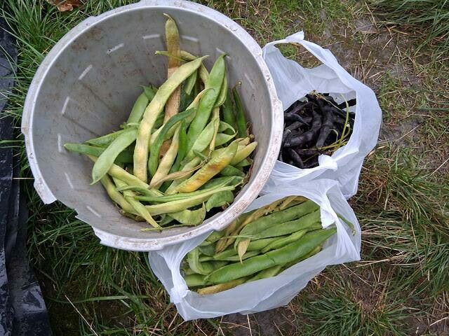 Ze zahrady jsme jeli na chalupu, kde to bylo, co se týká následků mrazu, úplně stejné, jako na zahradě. Na chalupě nám v podstatě zmrzlo už všechno (co se týká zeleniny), co tam ještě zůstalo. Tedy hlavně ačokča a fazole. Okurky a rajčata jsou tam jenom do počtu. U fazolí nestihla dozrát žádná šarlatová fazole. Sice se pár lusků zdálo celkem suchých a zrna z nich jsme vytřídili zvlášť, ale po pár dnech snahy o sušení je chytla plíseň a vyhodili jsme je. Zbytek nezralých fazolí jsme vyloupali a zamrazili. Úroda byla celkem slušná. Jenom nedozrála do sucha. Příště to bude chtít řidší výsevy a ideálně i nějaké lepší, více osluněné místo. Trochu lépe dopadla fazole „Borlotto“, kde byli taky suché lusky, ale zrna z nich neplesniví a zdá se, že dosychají. Zbytek nezralých zrn se taky zamrazil.