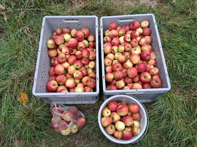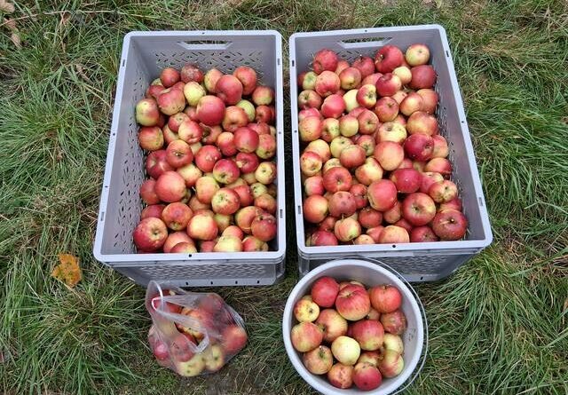 Sklizeň fazolí byla neplánovaná, ale sklizeň jablek jsme naplánovanou měli. Od jara sledujeme, jak se to u jabloní mění. Nejdřív nádherně kvetou, pak když jsou plody byl mráz, tak jsme se obávali, jestli vůbec něco sklidíme. Když se začali vybarvovat jablíčka, tak to bylo zase veselejší. Hodně jich začalo padat, tak jsme se obávali, co vůbec sklidíme. Naše obavy byly zbytečné. I když asi něco zmrzlo a dost toho opadalo, naše zimní jabloň tento rok nezklamala a dala nám relativně dost jablíček. Něco málo bylo poškozených, tak jsme je vzali domů, kde manželka udělal koláč a zbytek jsme usušili. Ta větší část ale skončila uskladněna na chalupě, kde by nám měla nějakou chvíli vydržet. Tento rok, co se týk jablek na chalupě, tak je celkem spokojenost. Příští rok snad bude ještě lepší, když nám začnou více plodit mladší jabloně.