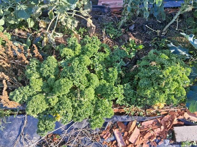 O dost lepší situace než u zelí, byla u kadeřávku. Hezky se rozrostl a sklidili jsme dost listové hmoty. Manželka část použila do slaného koláče a zbytek zkusíme fermentovat. Na rozdíl od zelí jsme to ale netlačili, jenom odstranili tuhé části, natrhali na menší kousky, zalili slanou vodou a zatížili. U kadeřávku to děláme poprvé, tak uvidíme, co z toho vznikne. Pokud se to neosvědčí, tak ho pořád můžeme zamrazit a použít podobně jako mangold.
