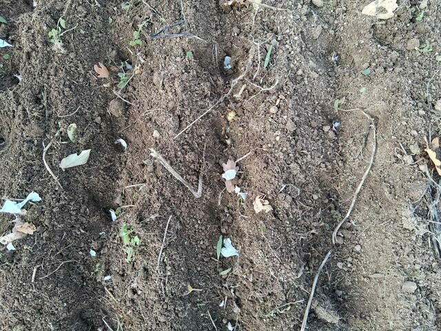 Výsadbu česneku na chalupě jsme si nechali na další týden. Do toho nám ale přišla realizace základové desky pro nový barák, která se domluvila na čtvrtek a pátek další týden. Na chalupu jsem jel jenom sám, protože manželka musela do práce. Ve čtvrtek měla realizační firma připravit bednění pro betonáž a v pátek betonovat. Na chalupu jsem přijel o dost dříve, a protože jsem na realizační firmu musel nějakou dobu čekat, začal jsem něco dělat. Kromě opravy nářadí jsem se rozhodl něco vysít do syntropic řady. Semínka teď vozím s sebou, kdyby byla příležitost, tak proč ne. Na chalupě zatím máme jednu syntropic řadu, tvořenou čtyřmi jabloněmi a jednou meruňkou. Přemýšlel jsem, co dalšího tam zkusit vysít a rozhodl jsem se pro zelenou renklódu. Už ani nevím, od koho jsme měli plody, ale chutnali nám, tak jsme si semínka nechali. Vysel jsem všechny, co jsme měli, na jedno místo. Protože ani na chalupě ještě není půda pod mulčem úplně připravena, dosypal jsem semínka zeminou z výkopů, kterou máme složenou na hromadě kousek vedle.