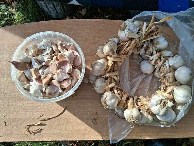 Pak konečně dorazila realizační firma. Protože ode mě po chvilce už nic nepotřebovali, tak jsem se rozhodl vysadit česnek. Došel jsem na půdu, vzal česnek a rozdělil si ho na stroužky.