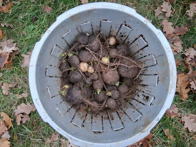 Sklizeň ředkví byla poměrně rychlá. Vytahovali jsme jenom ty vetší, kterých byla drtivá většina a čistili je od listů rovnou nad záhonem, kde ty listy zůstali jako mulč. Trochu jsem se obával, jaká bude úroda, protože mi přišlo, že ředkve ještě nestihli pořádně dorůst. Úroda ale nakonec předčila mé očekávání. V tom kýblu, do kterého jsme to házeli, to sice nevypadá jako moc, ale bylo toho asi 10 kg. Zpracování takového množství sice zabralo nějaký čas, ale už jsou očištěné, nakrájené a začíná fermentace. Tento rok jsme na chalupě neuložili nic, protože je spíše sníme fermentované než syrové.