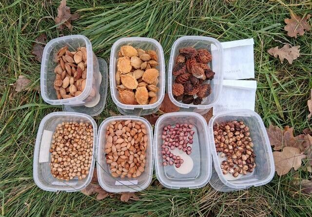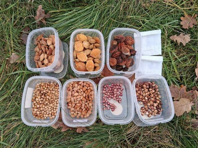 Pak už nastali dlouho odkládané výsevy semínek stromů do syntropic řad, které jsme si vytvořili tento rok. Semínek jsme měli hodně a čím dříve je vysejeme, tím lepší výsledek lze očekávat. Rozhodně jsme je nechtěli nechávat do dalšího roku. Prý čím jsou více vyschlé, tím horší klíčení. Taky potřebují projít stratifikací, takže na jaře to nechat nemůžeme. Možná by bylo ideální to vysévat ještě se zbytky ovoce, nebo přímo celé kusy ovoce, ale to není úplně snadno proveditelné, když se to nedělá hned. Viděl jsem to tak dělat v pár videích a prý je lepší klíčivost. My to zkusíme vysévat ve vysušeném stavu a uvidíme. Když tak další rok to uděláme zase jinak.