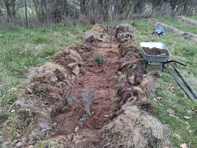 Tím máme práci na syntropic řadách letos asi hotovou. Maximálně tam ještě navezu nějaký organický materiál, pokud by byl. Jinak už jenom čekáme do jara a uvidíme, jaký úspěch mělo naše snažení s výsevy semínek stromů. Vzhledem k množství vysetých semínek by něco vyklíčit mohlo. Důležitější jsou pro mě ale pomocné dřeviny, kterých tam chci dát v příštím roku co nejvíc. Taky tam chci přidávat co nejvíc organiky. Zatím mi přijde zbytečné tam sázet další ovocné stromy. Doteď jich máme na zahradě vysazených pár desítek a úroda z toho není skoro žádná. Důvod je asi to, že stromy potřebují více energie na to, aby vůbec na zahradě přežili, než aby nám dávali úrodu. Takže chci zlepšit celkové prostředí na zahradě a až pak budeme přidávat další stromy. Nějakou chvíli to asi potrvá, ale lepší způsob zatím nevidím.
