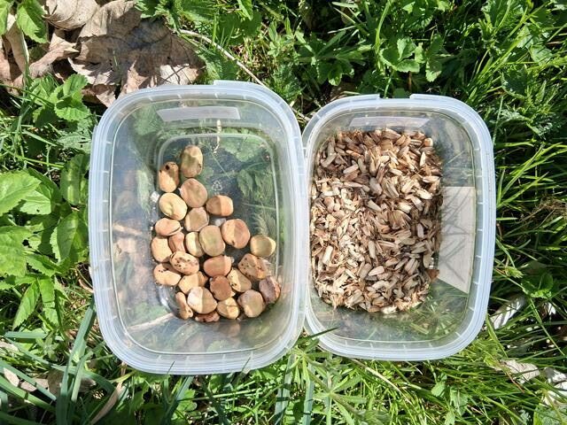 Počasí nám v sobotu zase hezky vyšlo, tak nebylo proč váhat a vyrazili jsme na naše pozemky. Nejdřív jsme jeli na chalupu, protože jsme chtěli vzít plastové kryty z PET láhví, na pozdější výsevy brukvovité zeleniny. Když jsem ráno připravoval semínka na výsevy, tak mi přišla pod ruku krabička se semínky bobu. To jsme si vzpomněli, že jsme chtěli zkusit výsev bobu i na chalupě. Před pár lety nám na chalupě vyrostl nějaký bob ze samovýsevu a dařilo se mu hodně dobře. Na zahradě se mu moc nedaří, i když to pořád zkoušíme, tak proč to nezkusit i na chalupě.