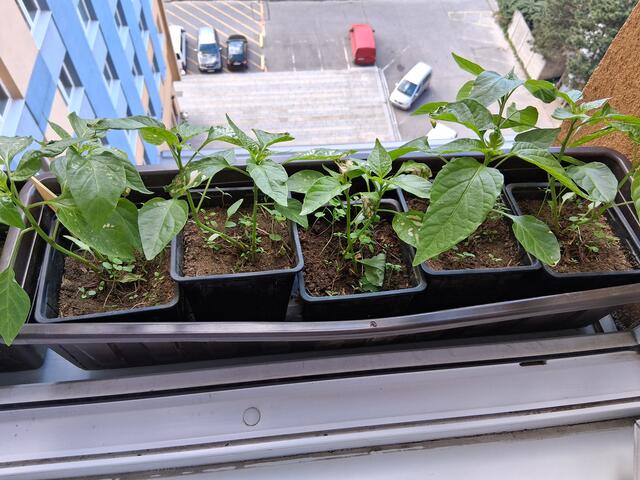 Výsevy jsem měl za sebou. Teď bude největší problém pořešit, kde všechny ty truhlíky nacpeme. Jeden parapet už okupují papriky. Na druhém jsou taky částečně papriky, konkrétně třetí výsev pálivé papriky, který už konečně vyklíčil. Na parapetu zbývá místo pro dva truhlíky a máme je ještě čtyři. Zatím jsem to vymyslel tak, že ty větší papriky už nějakou dobu otužuji na parapetu z vnější strany. Ráno je vyložím venku na parapet a na vnitřní stranu dám rajčata. Večer zase papriky dám dovnitř a rajčata půjdou na skříňku do stínu. To už moc světla nepotřebují. Ještě by bylo řešením použít umělé osvětlení (které pořád mám), ale moc se mi nechce zvykat rostliny na umělé světlo. Další problém nastane, když budu chtít otužovat i rajčata. To je pak budu muset s paprikami nějak rotovat. Snad to ty papriky do té doby nějak zvládnou. Jsem to s tím otužováním už malinko přehnal a část rostlin to odnesla spálenými listy. Je to ale potřeba dělat, protože dát je přímo z pokoje venku na pole by nedopadlo nejlépe. Máme s tím zkušenosti.